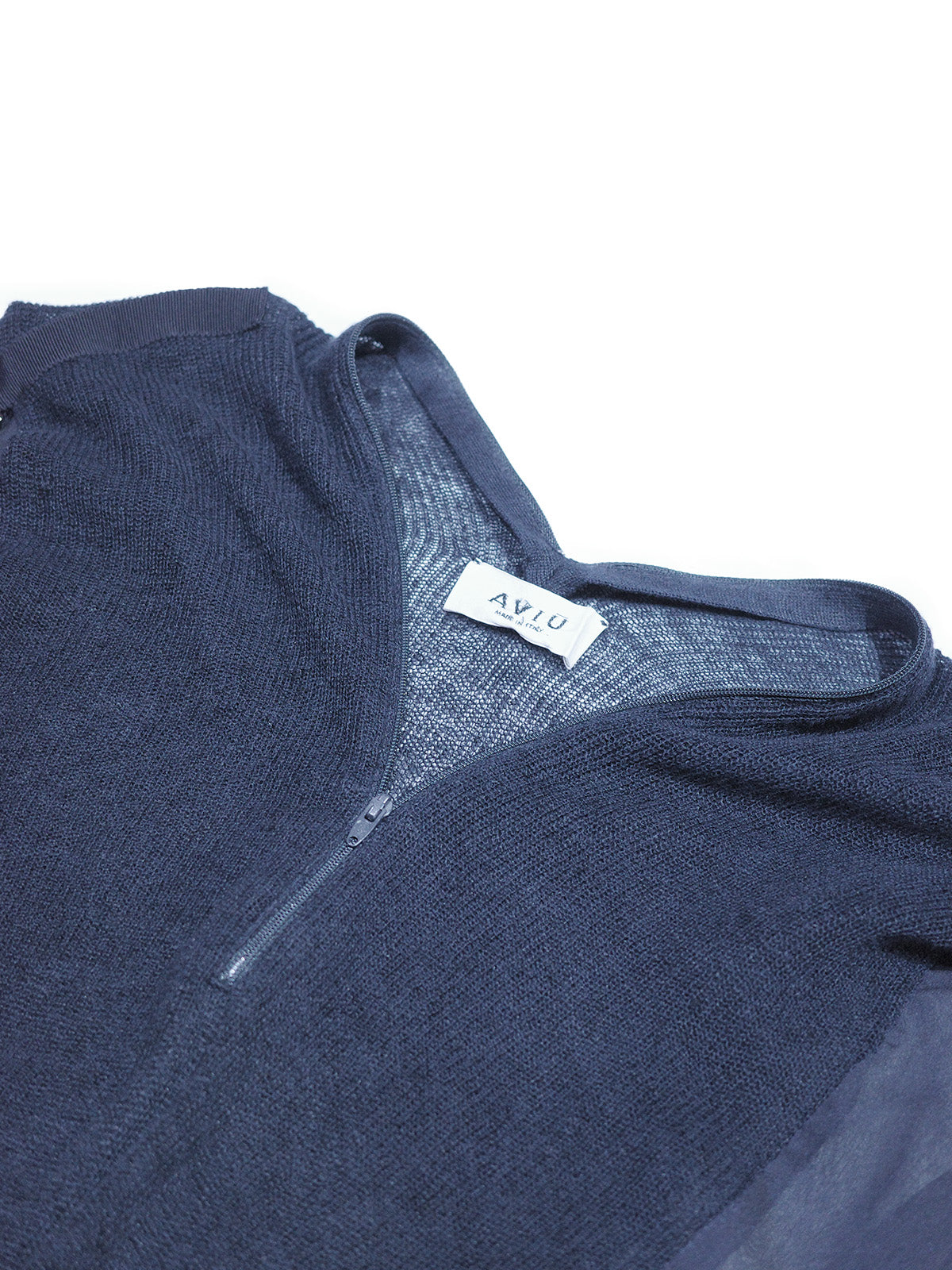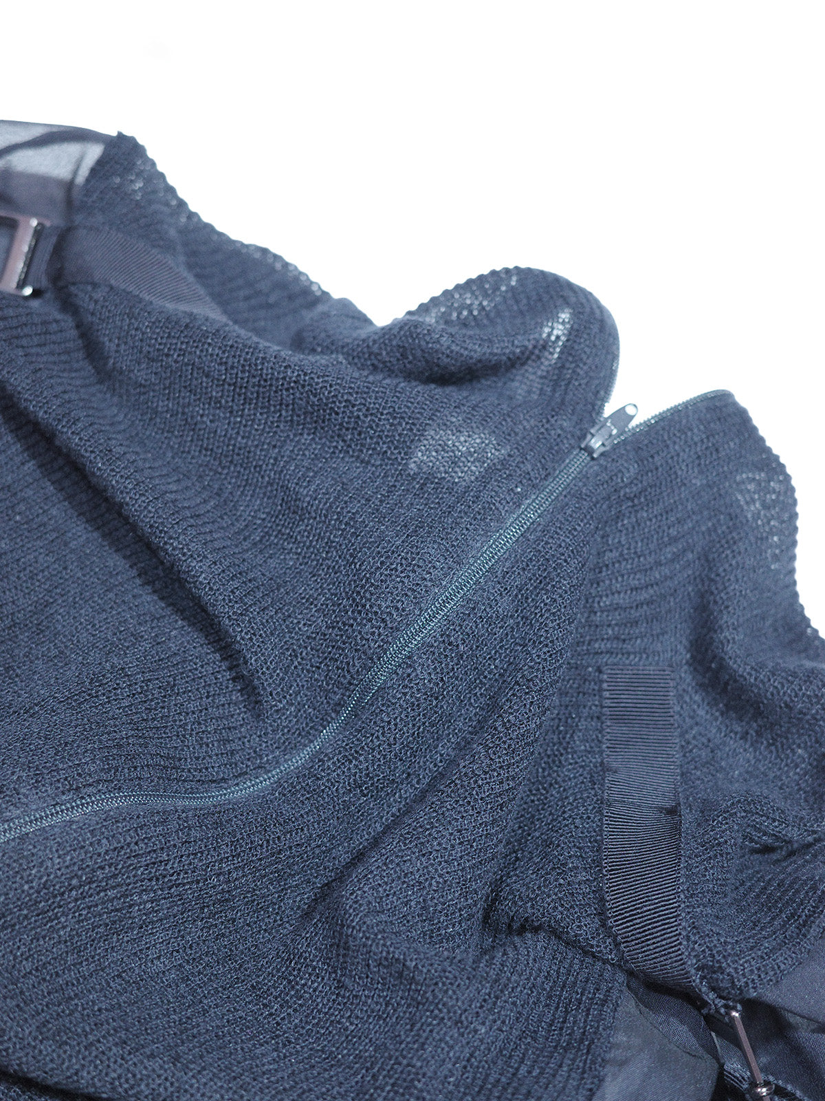 ニットとシアーの異素材組み合わせがお洒落な1着。一部分がシアー素材になっているのでヘルシーな肌見せを楽しめます。胸元のジップは全開閉出来るタイプなのでお好きな位置で調整可能です◎ワントーンでまとめたモードなコーディネートや、デニムと合わせたカジュアルコーデもおすすめ。